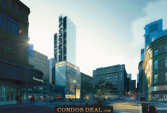 1 Square Phillips Condos is a new condo project by Brivia Group and is currently in pre-construction. 1 Square Phillips architect is designed by Menkes Shooner Dagenais LeTourneux architectes. The new project will be located at 1201 Place Phillips in Montreal. The major intersection is Rene-Levesque Boulevard West & Boulevard Robert-Bourassa.