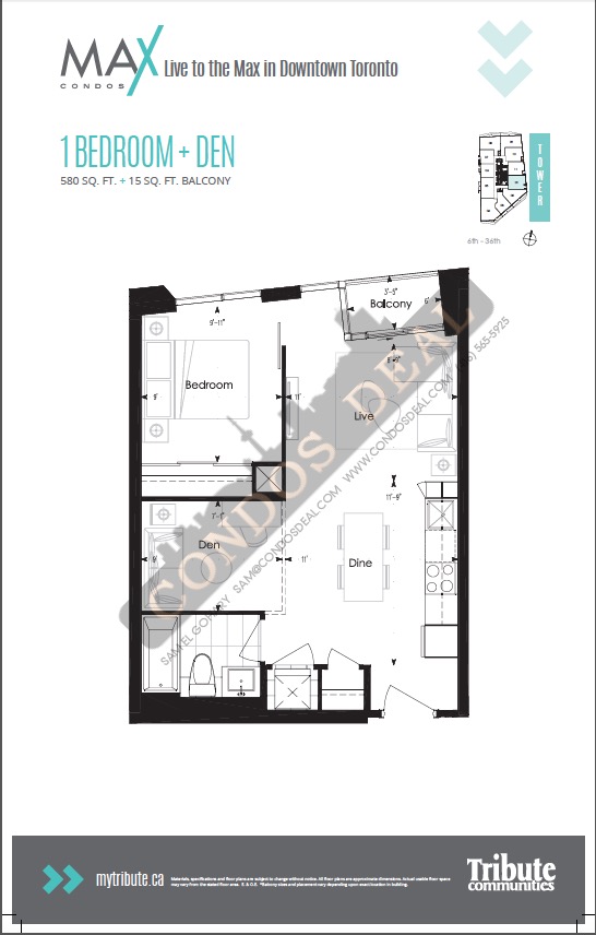 FOR SALE 1 BEDROOM PLUS DEN UNIT AT MAX CONDOS